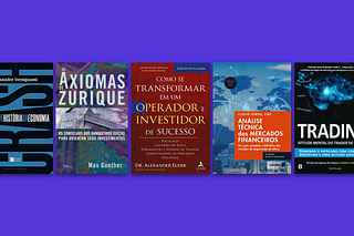 Lista com 5 livros sobre assuntos relevantes pra formação de traders. Economia, análise técnica, psicologia do trading, como lidar com risco etc.