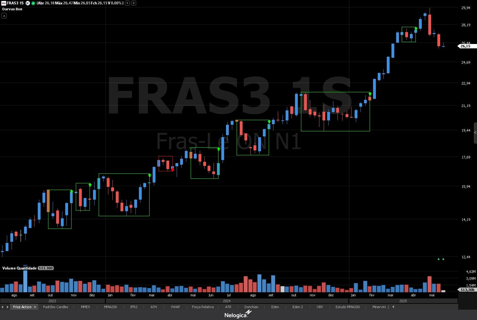 Outra forma de operar seria comprando no fundo de uma caixa já estabelecida, quando o preço retornasse ao suporte.