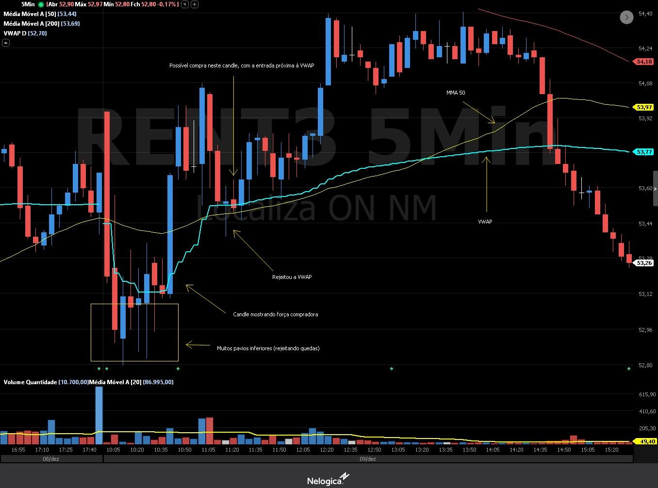 Basicamente, a ideia é comprar quando perceber que a VWAP está atuando como suporte.